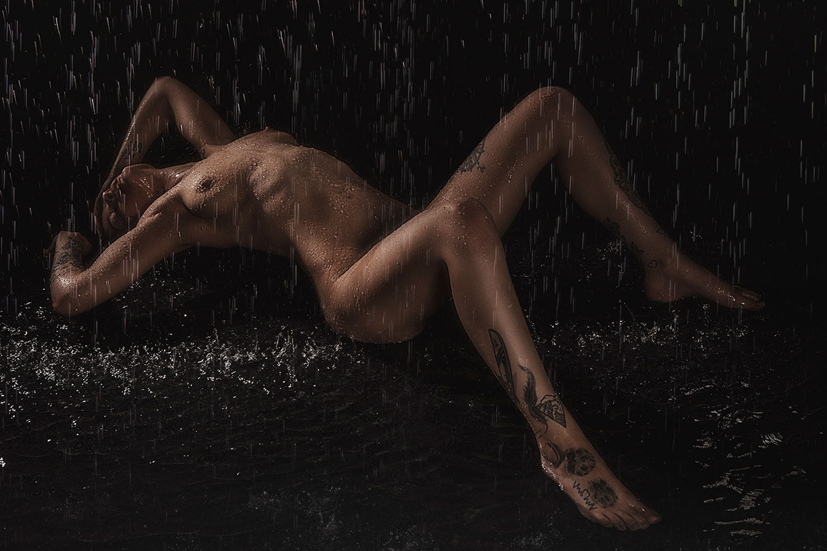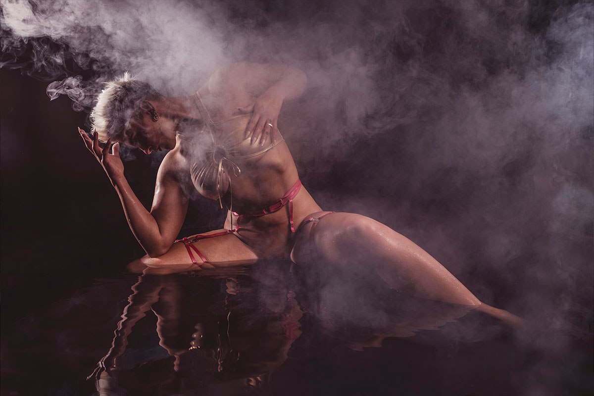 Viele denken das ist alles nicht echt... – DOCH – alles real. Ich kann es in meinem Studio regnen lassen und es macht riesen Spaß. So ein Regenshooting kann man so ca. 1,5 bis 2,5 Std. machen, danach ist das Wasser ausgekühlt. Das ganze kann man noch mit Schaum und Nebel kombinieren. Meine Zinkwanne erfreut sich auch immer größerer Beliebtheit. Das Set hierfür ist auch sehr variabel. Viele wollen aus der Wanne gar nicht wieder raus. Ich sollte vielleicht Wellness-Shootings anbieten. Desweiteren habe ich noch die Möglichkeit in einem kleinen Schwimmbad Fotos zu machen. Die Kosten hierfür immer nur auf Anfrage.