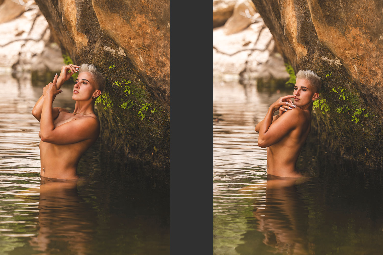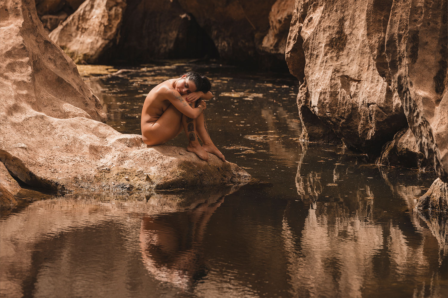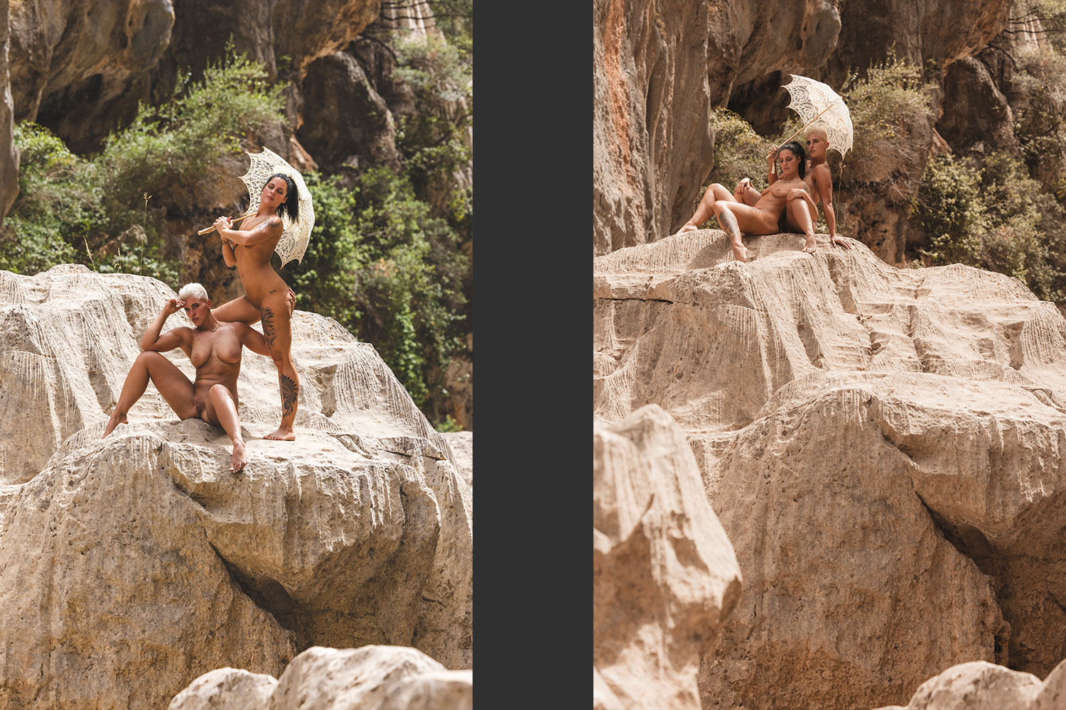 ... man sollte schon gerne vor dem eigentlichen Touriaufmarsch Sa Calobra erreichen. Die Serpentinen auf dem Weg dahin sind für sich schon das pure Abenteuer. Für uns als Flachlandtiroler war das schon eine echte Herausforderung. Das Tramuntanagebirge enschädigt dafür mit seiner wunderschönen Lanschaft. Nachdem wir in der Schlucht des Torent des Pareis angekommen sind, liefen wir ca. 1,5 km, bis wir unseren Shootingspot erreicht hatten. Bis auf ein paar vereinzelte Touris hatten wir dort echt Ruhe zum Shooten. Es war ein überwältigendes Erlebnis für uns Drei. Danke an meine liebe Sarah für Deinen Tip.