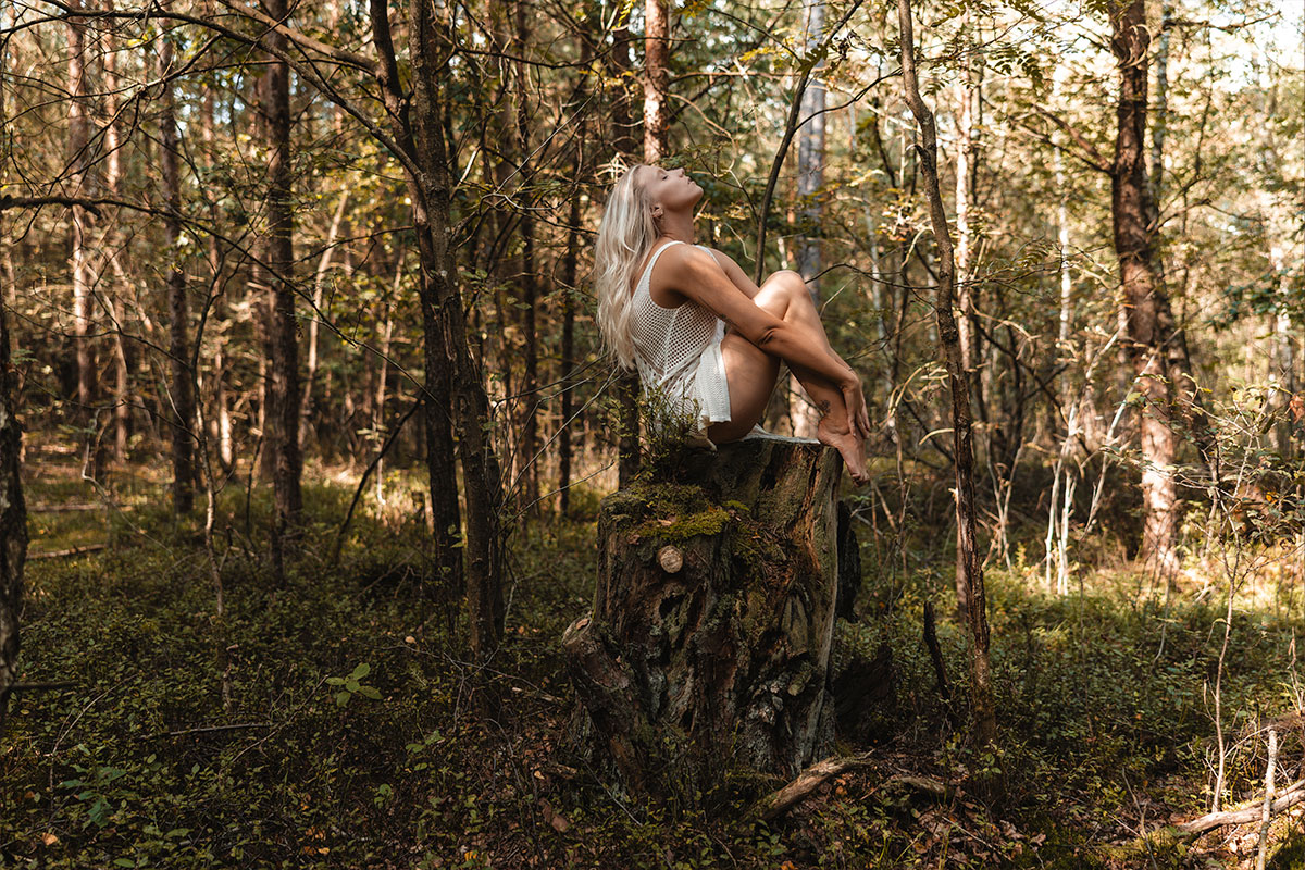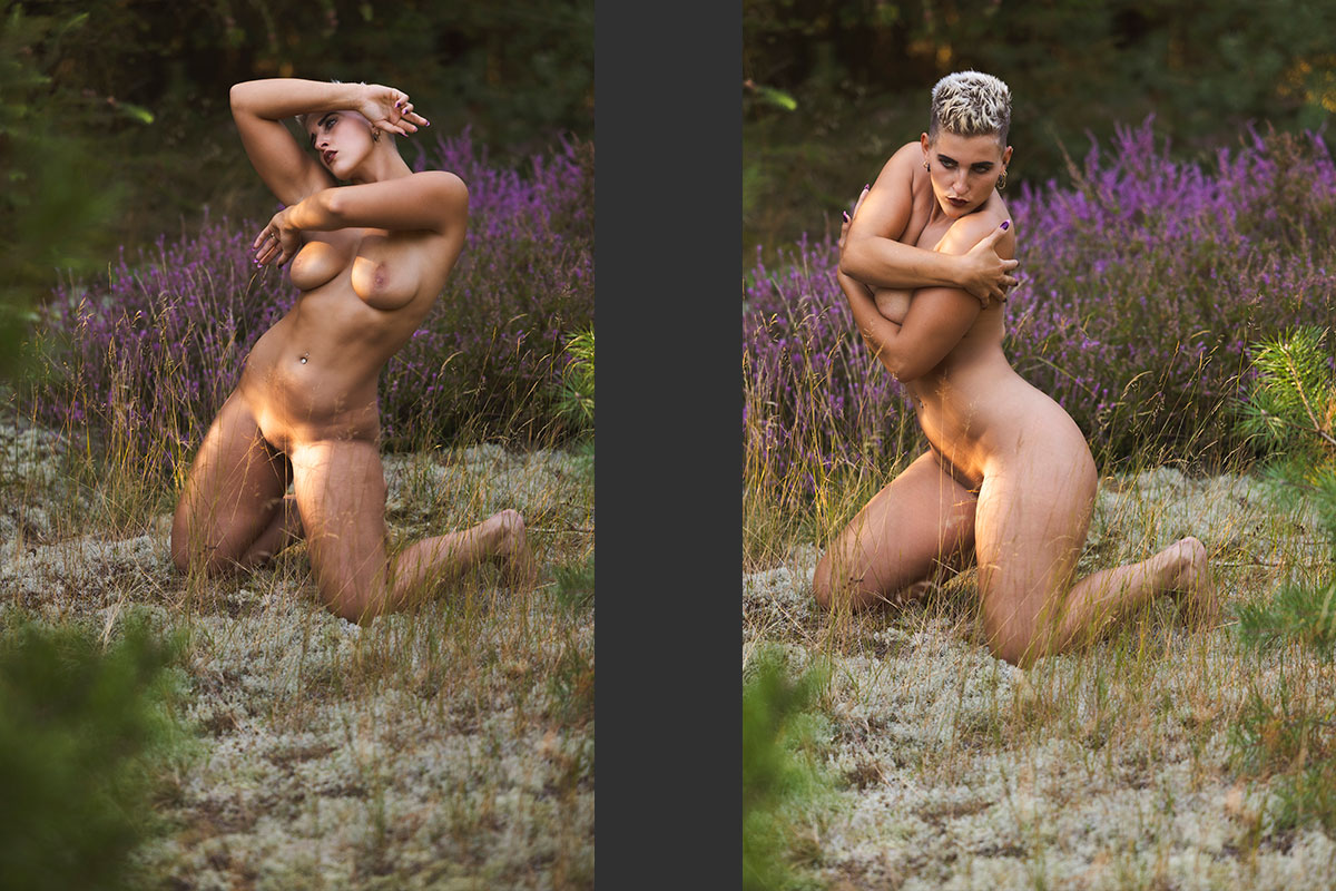 Unsere nordische Landschaft ist viel durch Wald, Moore und Heidelandschaften geprägt. Warum die dann nicht für Shootings nutzen? Im August, wenn die Heide blüht, zieht es mich besonders da hin um zu shooten. Durch Stürme werde oft viele Bäume umgeworfen. Diese knorrigen Wurzeln eignen sich hervorragend für Fotos, aber auch die farblich unterschiedlichen Moosflächen sind immer wieder gut geeignet. Bei allen Shootings in der Natur achte ich immer besonders darauf, dass wir nichts zerstören.