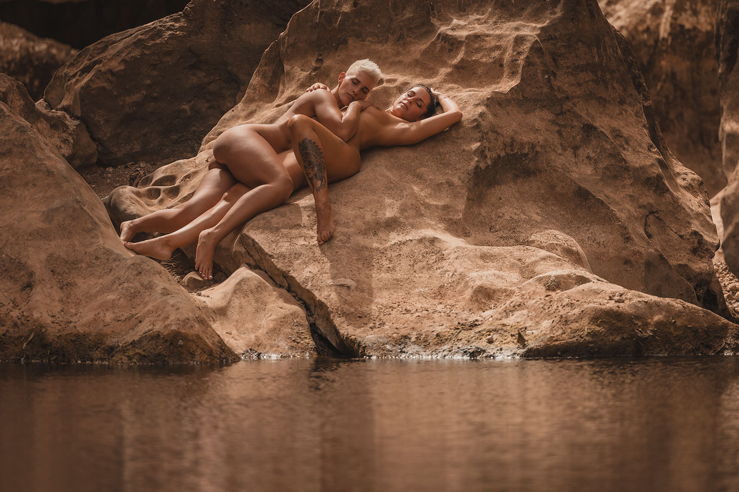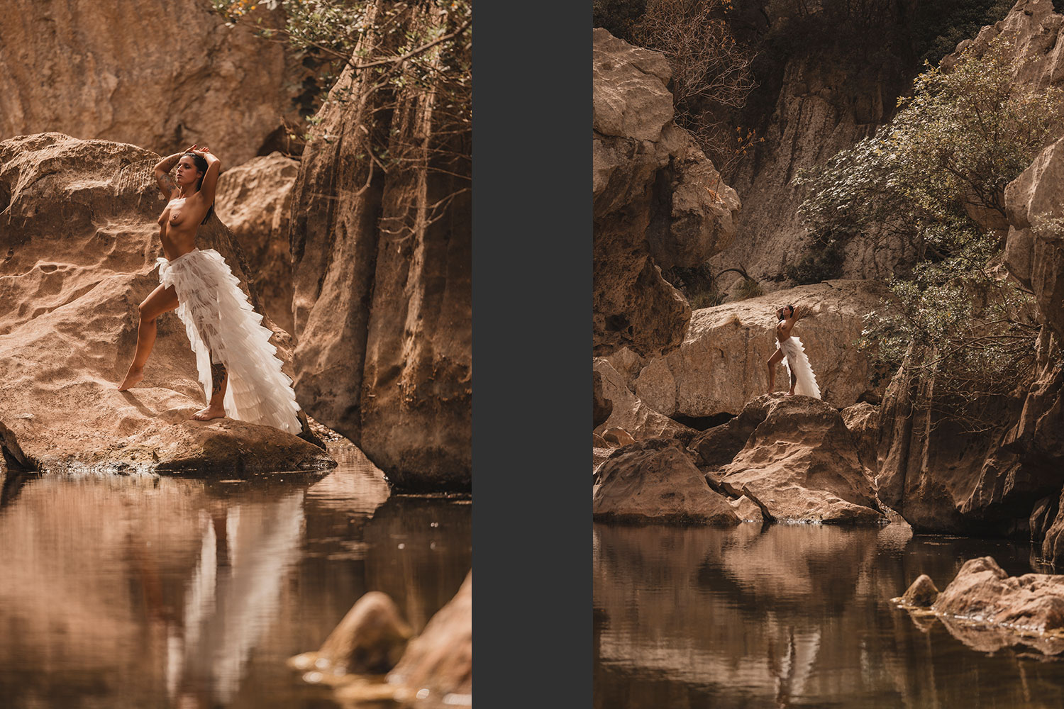 ... man sollte schon gerne vor dem eigentlichen Touriaufmarsch Sa Calobra erreichen. Die Serpentinen auf dem Weg dahin sind für sich schon das pure Abenteuer. Für uns als Flachlandtiroler war das schon eine echte Herausforderung. Das Tramuntanagebirge enschädigt dafür mit seiner wunderschönen Lanschaft. Nachdem wir in der Schlucht des Torent des Pareis angekommen sind, liefen wir ca. 1,5 km, bis wir unseren Shootingspot erreicht hatten. Bis auf ein paar vereinzelte Touris hatten wir dort echt Ruhe zum Shooten. Es war ein überwältigendes Erlebnis für uns Drei. Danke an meine liebe Sarah für Deinen Tip.